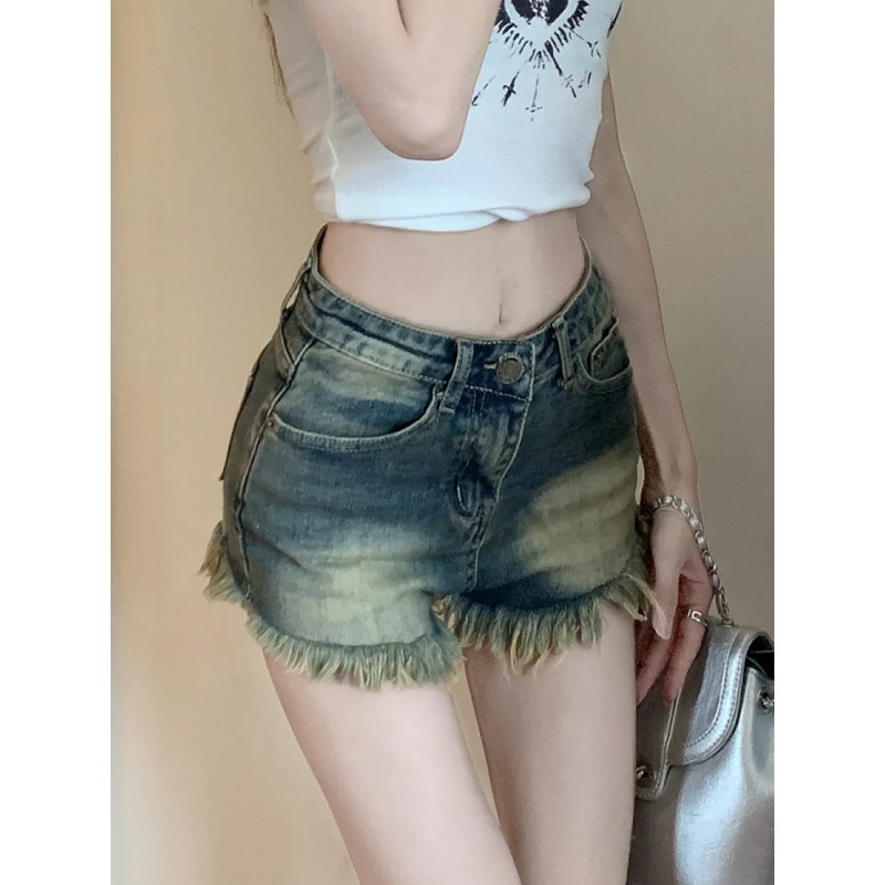 ギャルの毛の辺の復古の高腰のデニムのショートパンツの女性の夏の薄いタイプの小さい背はやせていて、セクシーな超短のホットパンツを合わせます。
