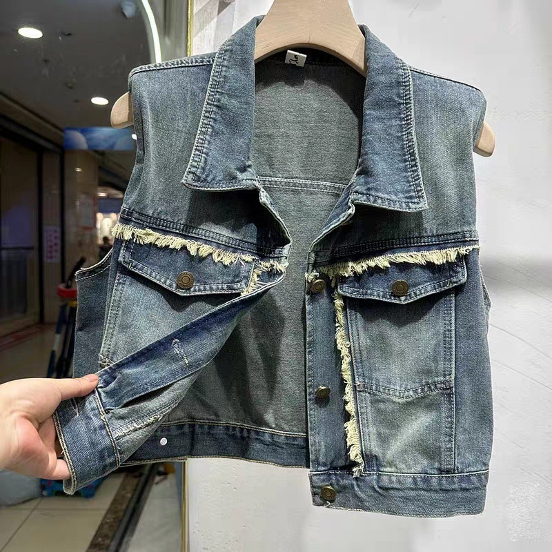 香港風レトロなデザインの毛の縁の短いデニムのベストの女性の秋の新型のファッションの袖なしの上着の馬のジャケットのファッション
