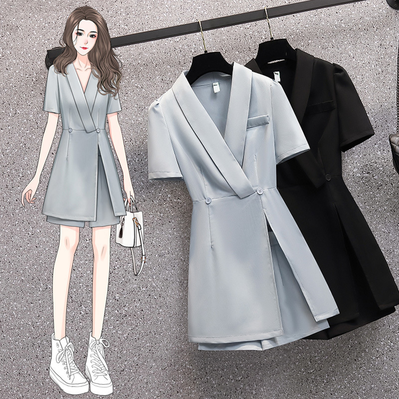 2024夏の新しい気質の高級感のスーツのワンピースの半ズボンの洋風の太っている妹の洋風はやせている2つのセットを現します。