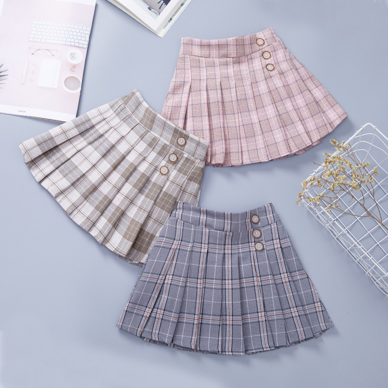 女の子の半身のスカートのプリーツのスカートの2024夏の新型の学院の風の子供の格子のスカートの洋風の小さい女の子のスカート