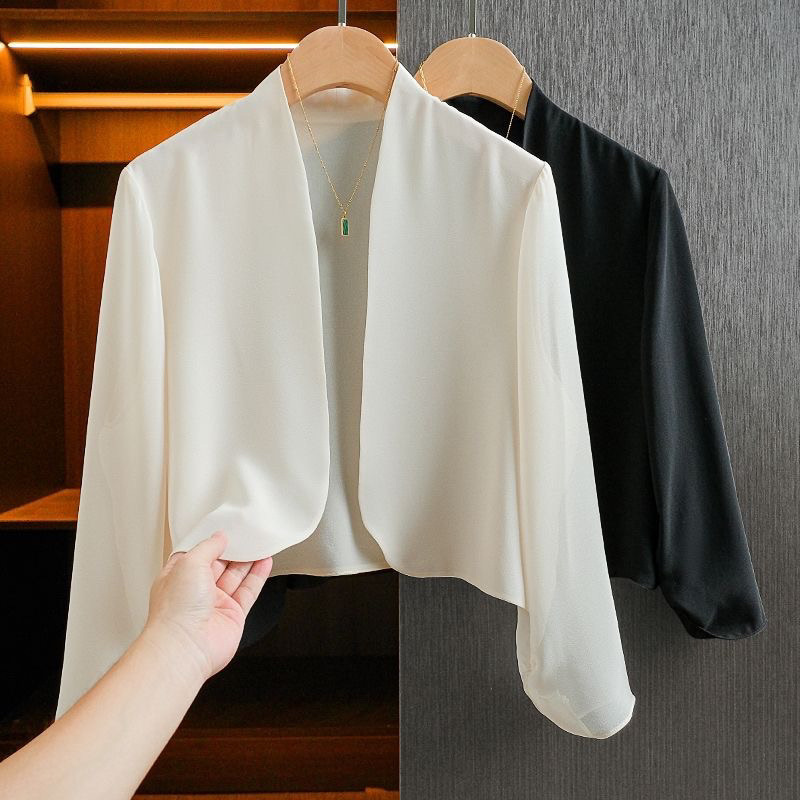 氷の糸のしわの白い日焼け止めのシャツの女性の長袖の2024夏の新型の超仙の百合のエアコンのカーディガンの薄いコート