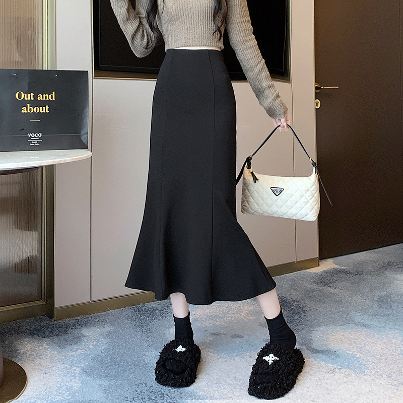黒い半身のスカートの女性の春夏2025は腰の弾力性を緩めています。