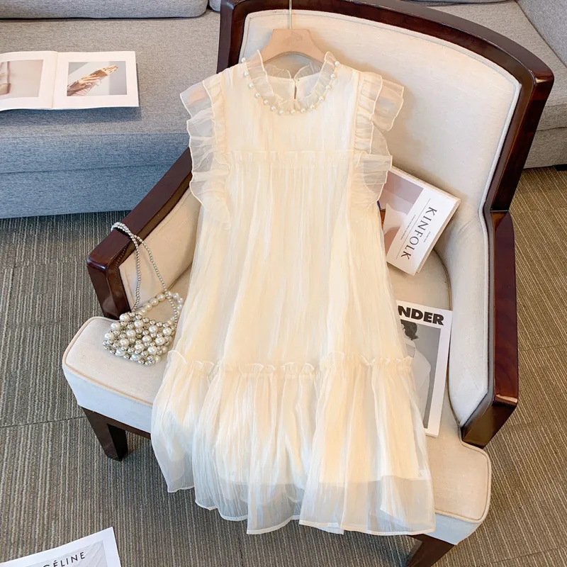 フランスの甘くてかわいい小さい袖のワンピースの女性のドーパミンの女の子は夏の高級感のゆったりしている短いスカートを着ます。