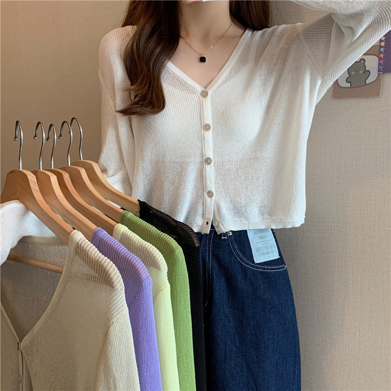 氷の糸のニットの日焼け止めのカーディガンの女性の夏の薄いタイプのショールのコウモリの袖のコートはサスペンダーのスカートの外でエアコンのブラウスに乗ります。