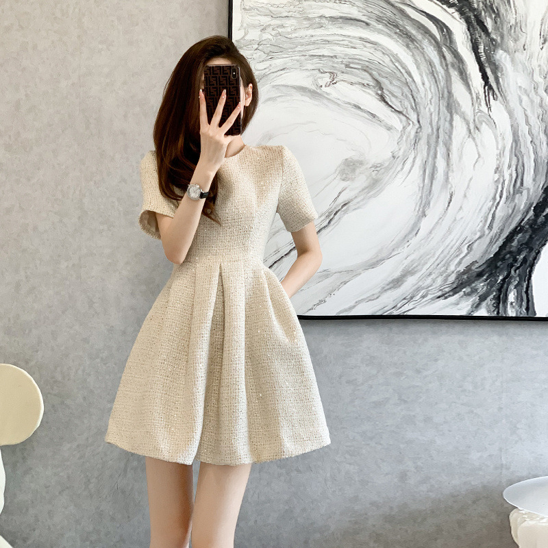 高級感2023小香風ワンピース新型女性夏フランスレトロ小衆気質がやせて腰のスカートを収めている