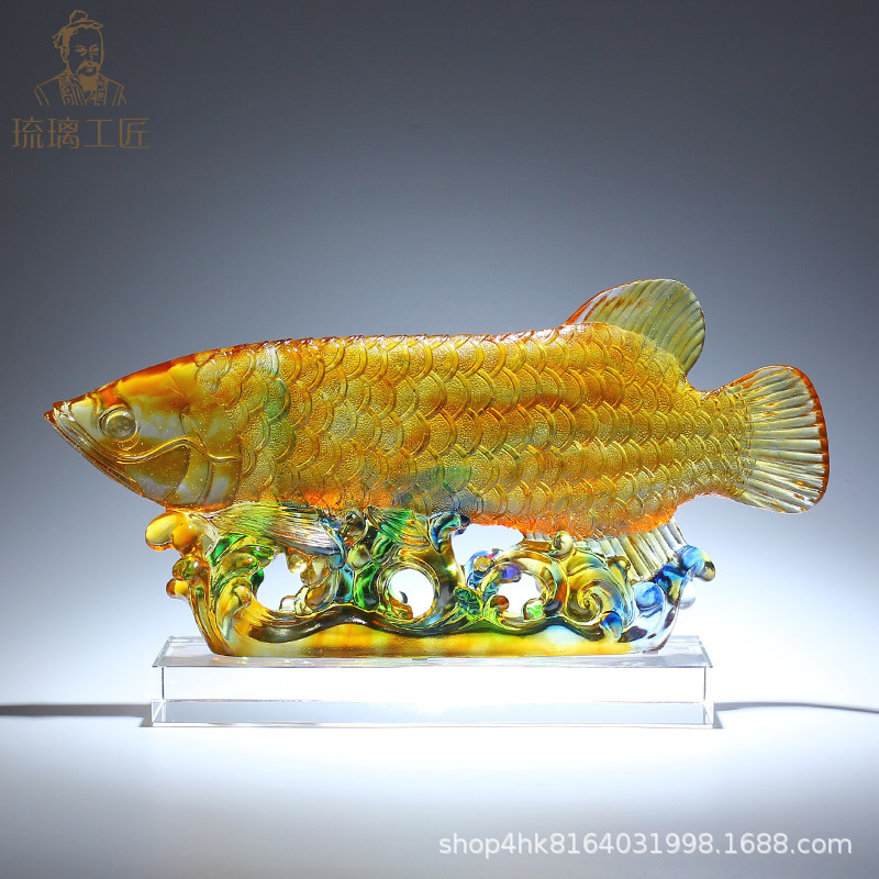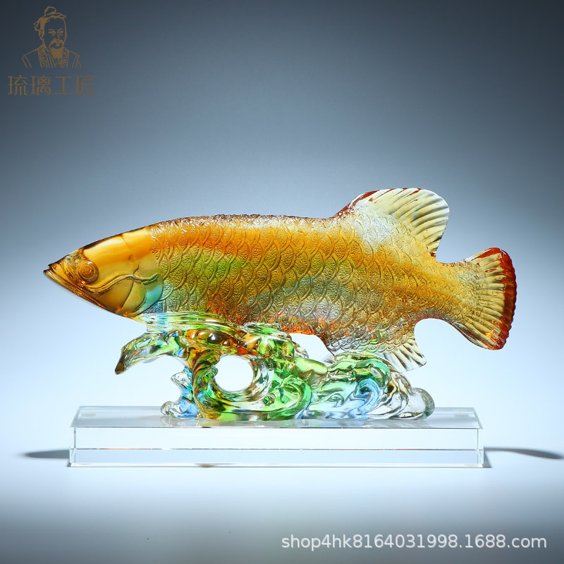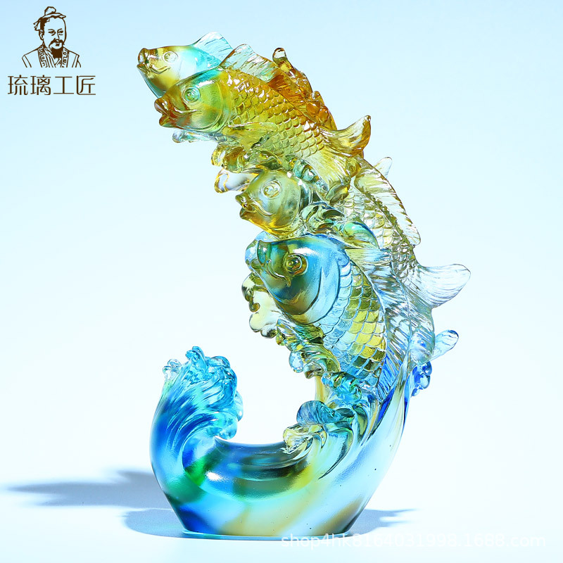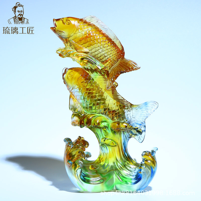淄博非遺瑠璃招財金龍魚装飾品置物軽豪華高級会社ホテル開業移転プレゼント