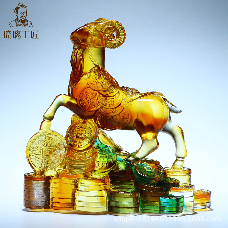 瑠璃十二生肖コイン羊置物ホームオフィス装飾工芸品誕生日プレゼント羊マスコット