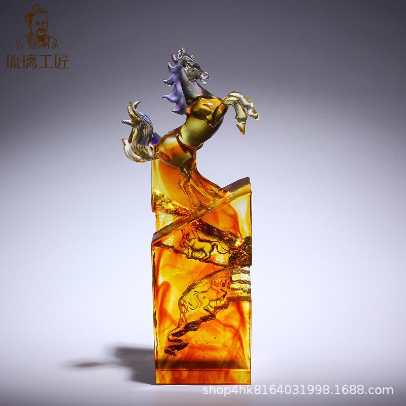 招財置物馬淄博瑠璃工芸品現代客間玄関装飾開業ジョー移転プレゼント高級大気