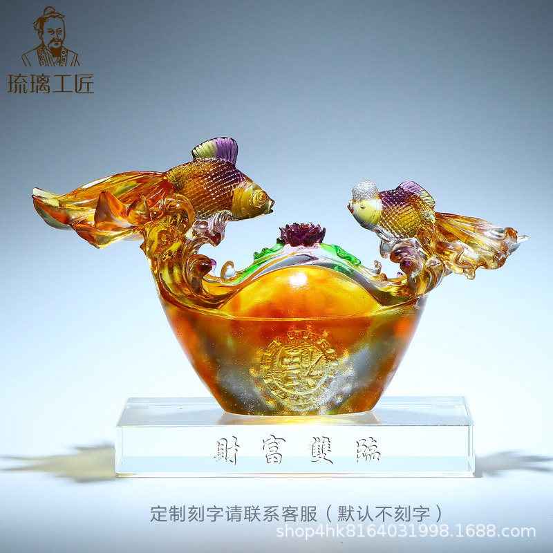 瑠璃魚の装飾品の置物は軽くて豪華で高級な工芸品の事務室の社長のデスクトップの置物の指導者の誕生日プレゼントです。