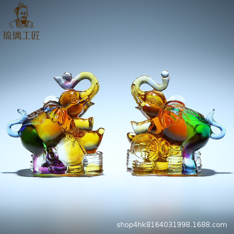 瑠璃工芸品招財進宝象置物一対水晶客間家庭装飾品引っ越し新居プレゼント