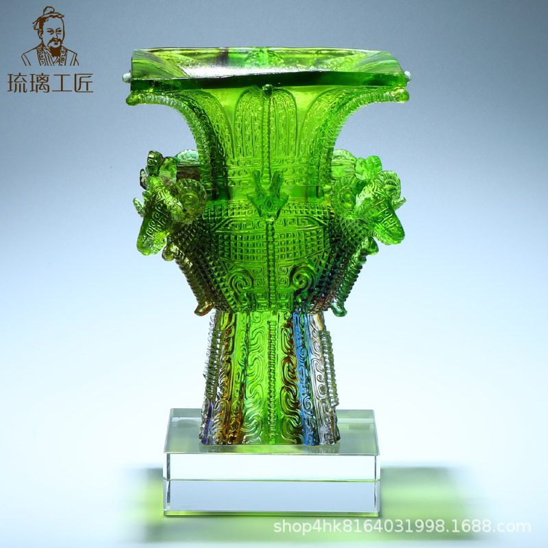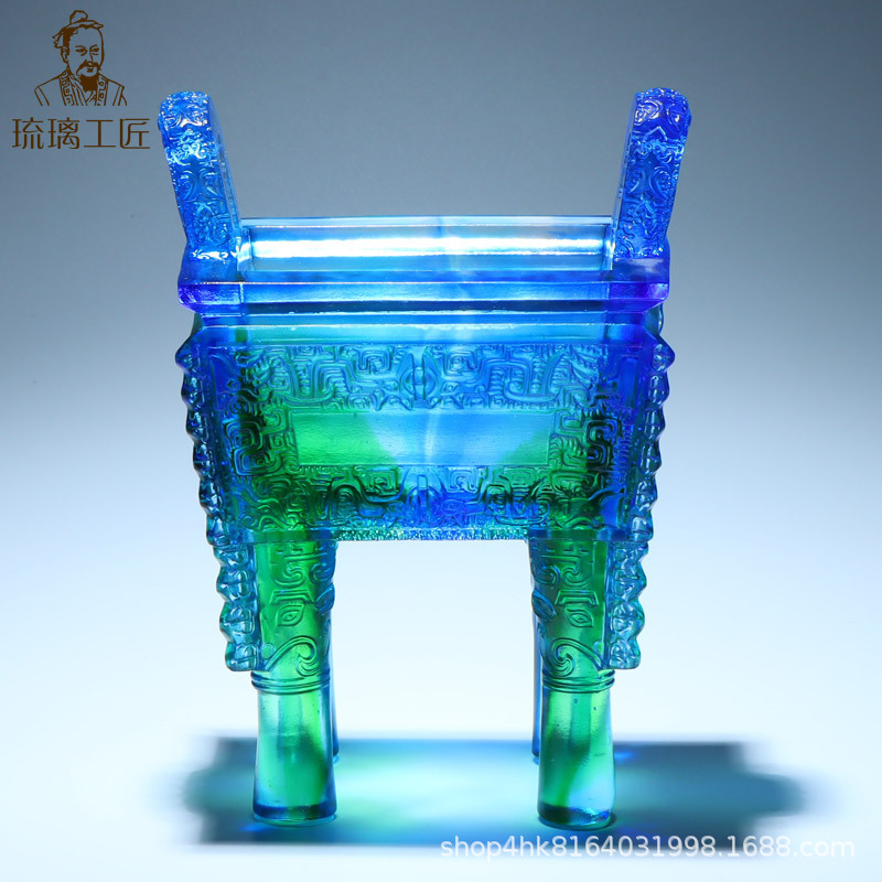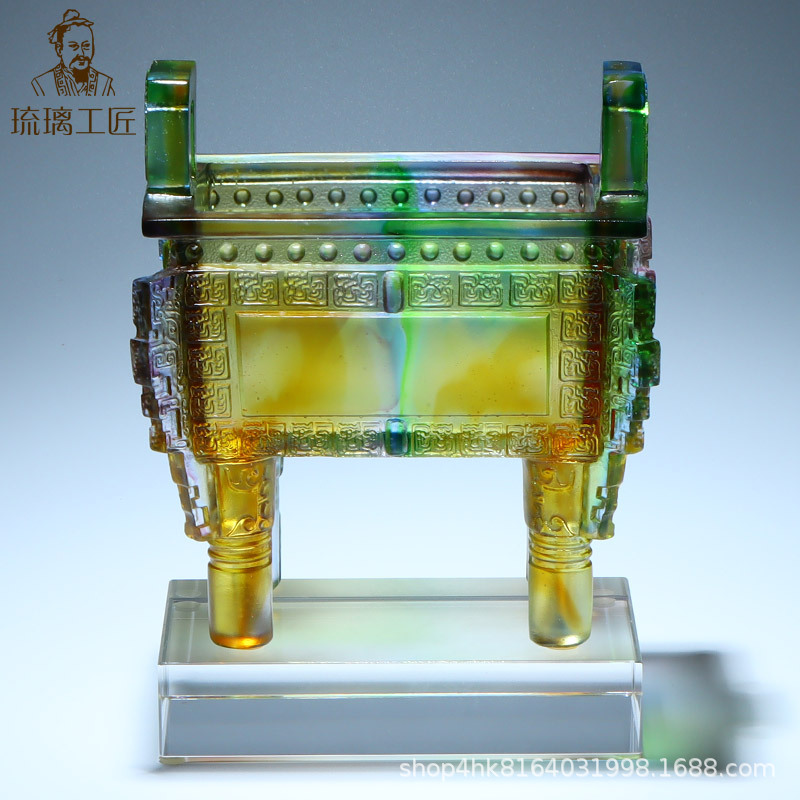 瑠璃工芸品四足方鼎盛千秋置物オフィス装飾友達会社開業祝いプレゼント高級