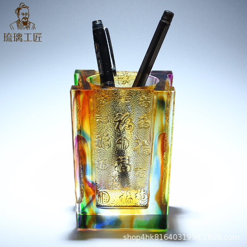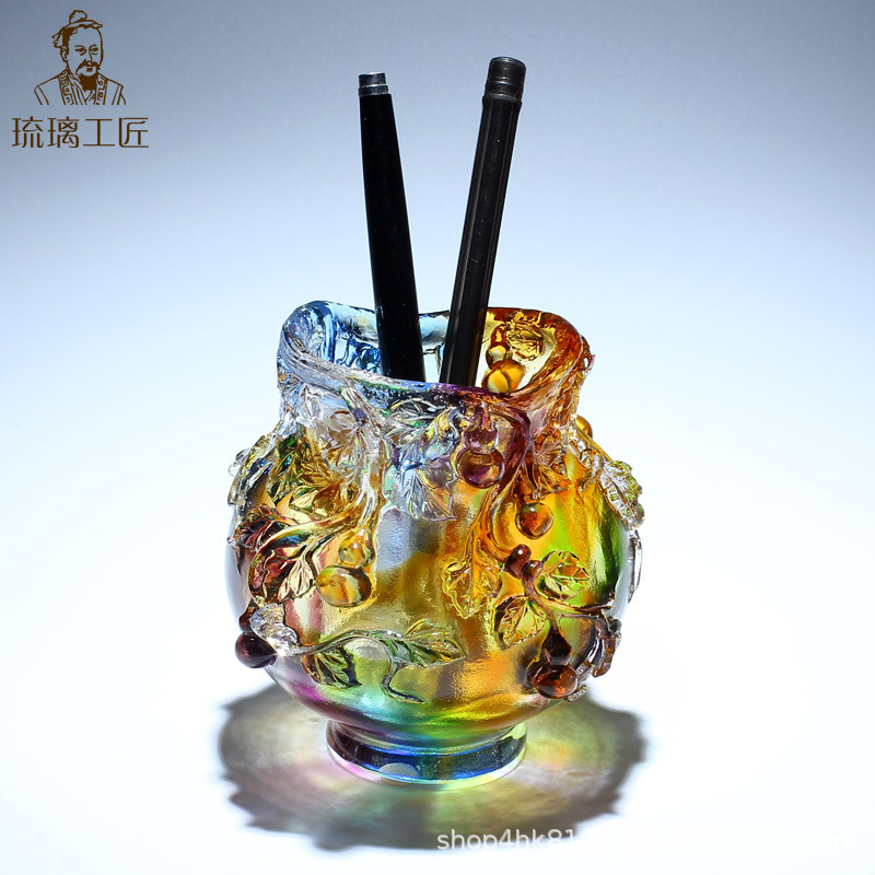 瑠璃工芸品福禄筆筒事務室の社長のデスクトップに水晶を飾って高級な大気の誕生日プレゼントを指導します。