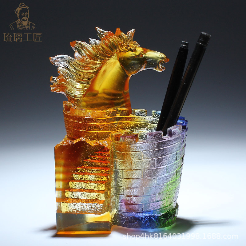 北京万里万里長城観光記念瑠璃工芸品馬頭筆立て事務室のデスクトップの置物が高級です。