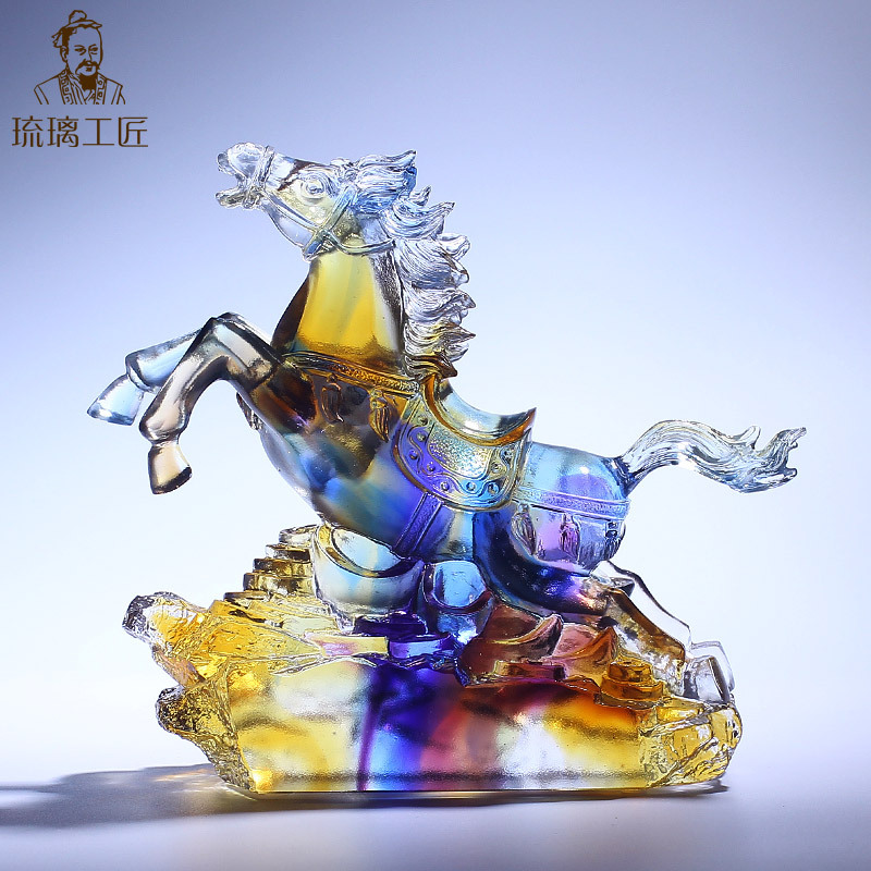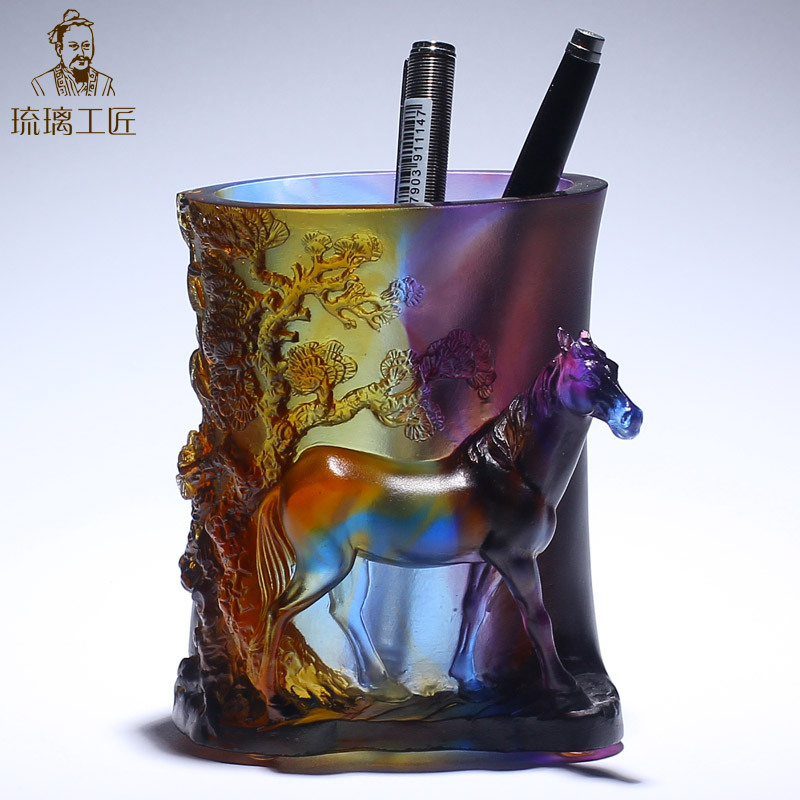 瑠璃工芸品馬は成功筆立て事務室のボステーブルに飾って指導者の誕生日プレゼントをプレゼントします。