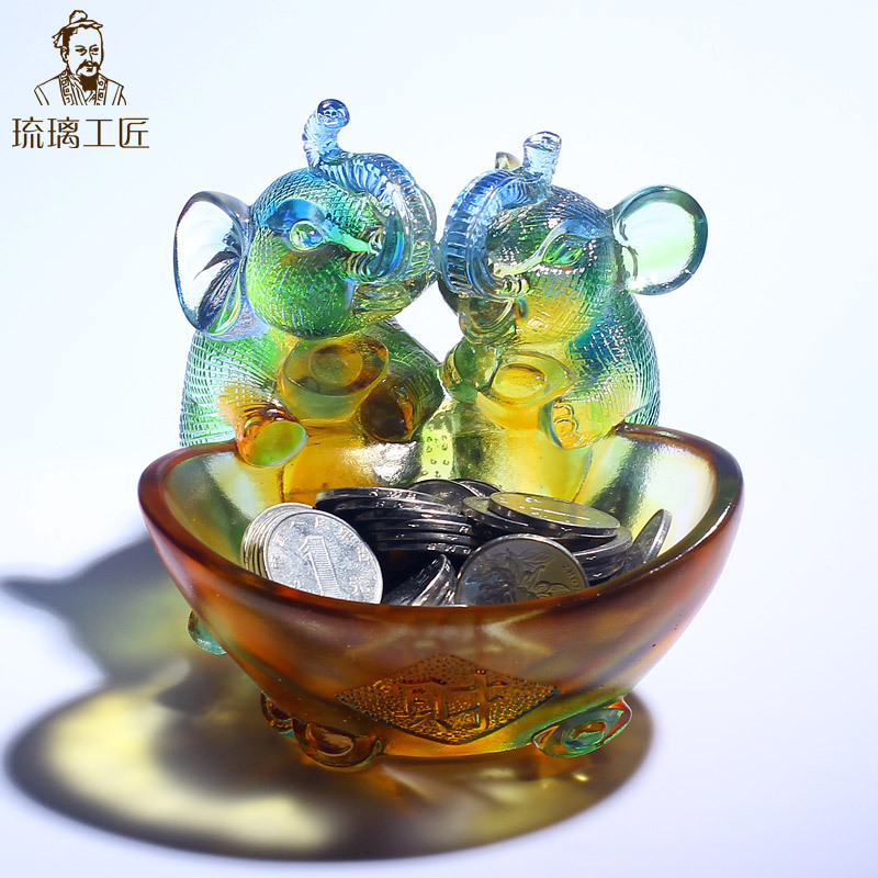 クロスボーダー瑠璃象元宝聚宝盆置物招財新家喬遷新居プレゼント玄関鍵収納