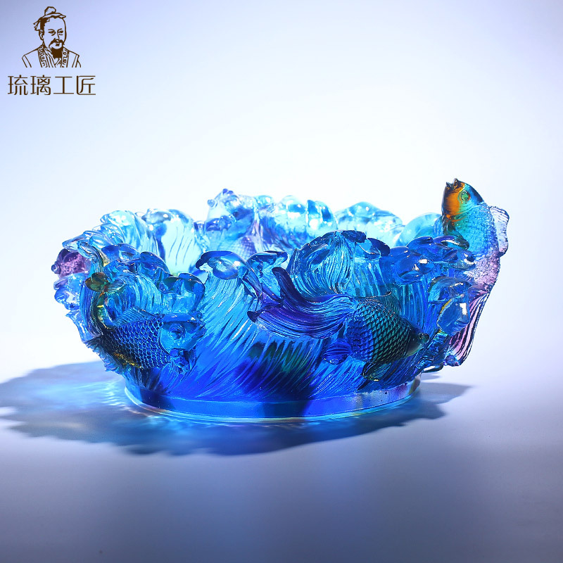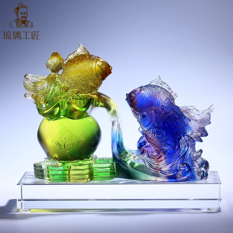 瑠璃工芸品は魚如意招財中国式客間装飾品のアイデアに新しい家の引っ越しプレゼントを飾るのが実用的である