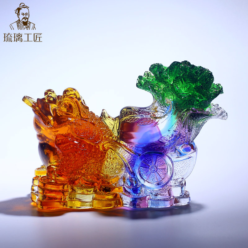 国境を越えた瑠璃職人が水晶白菜百財開業プレゼントを飾っています。