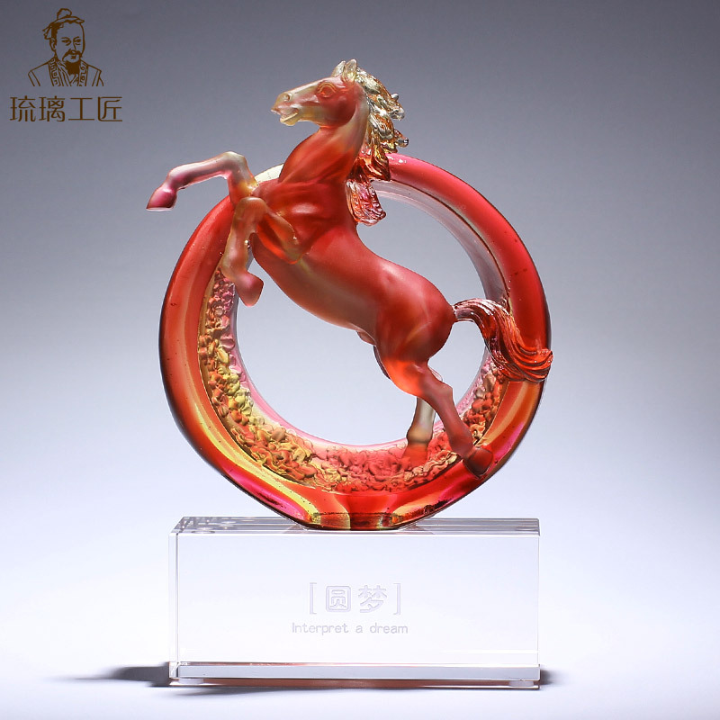 瑠璃工芸品生肖馬事務室の展示棚の机の置物は金を集めて指導者に昇進の誕生日プレゼントを送ります。