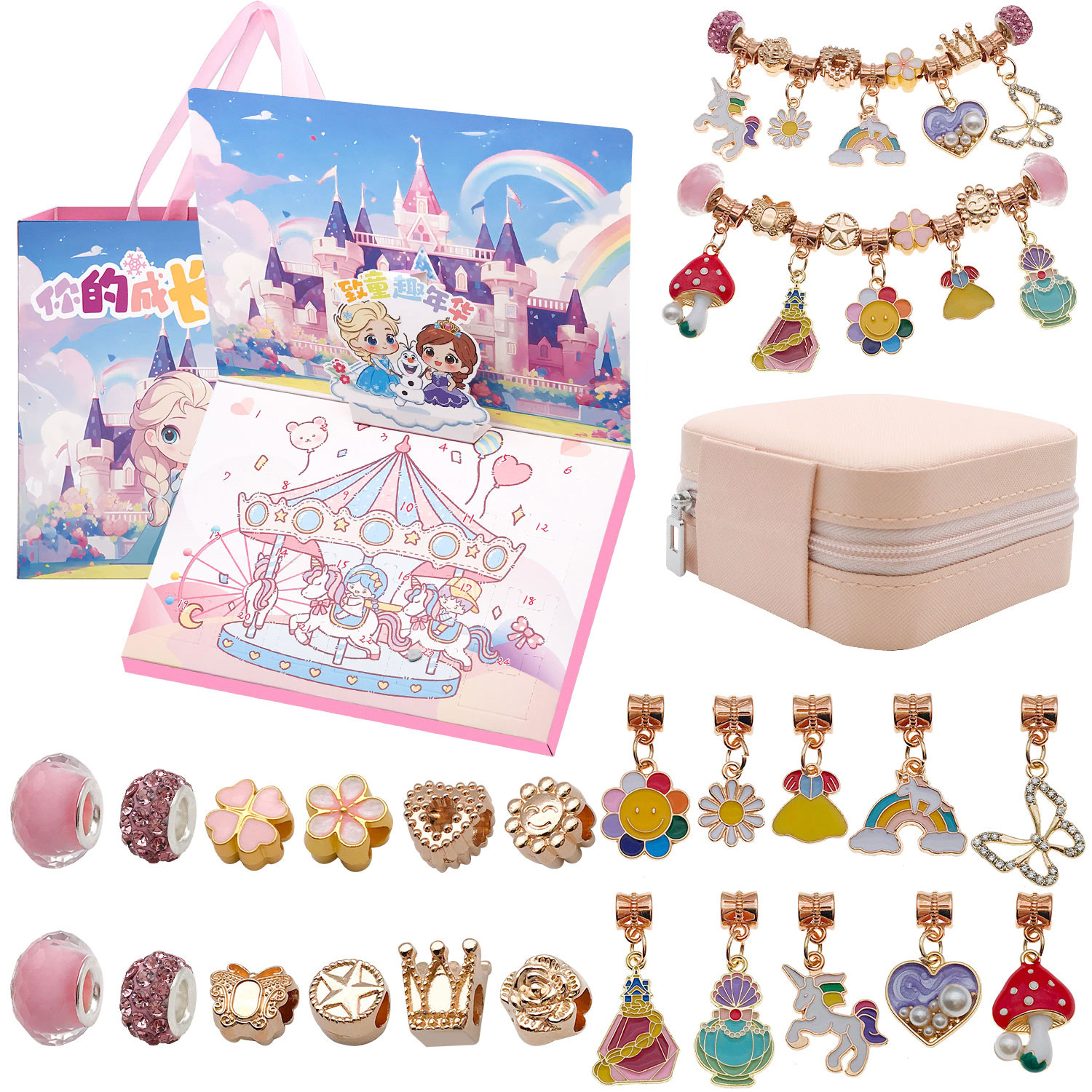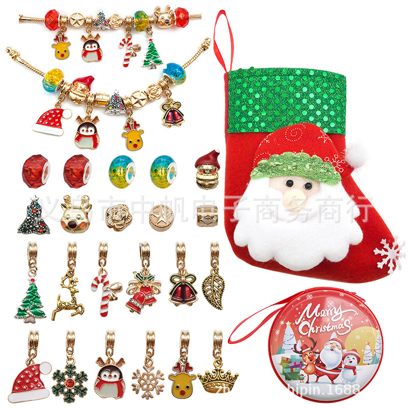 24ピースクリスマスシリーズブレスレットセットクリスマス靴下个性diy漫画ビーズ子供ブレスレットギフトボックスセット