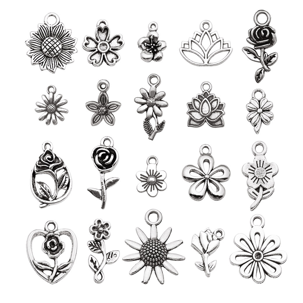 国境を越えて人気のある古代銀合金レトロローズひまわりの花ペンダントペンダントDIYジュエリーアクセサリー電気メッキ