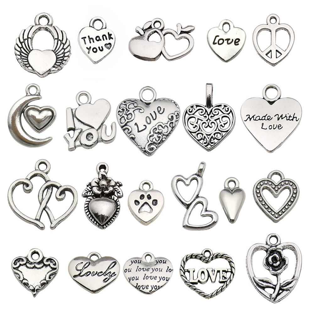 国境を越えて人気のある21種類のレトロなチベット銀色の透かし彫りの愛の桃のハート型の合金のアクセサリーのペンダントのイヤリングのネックレスの部品