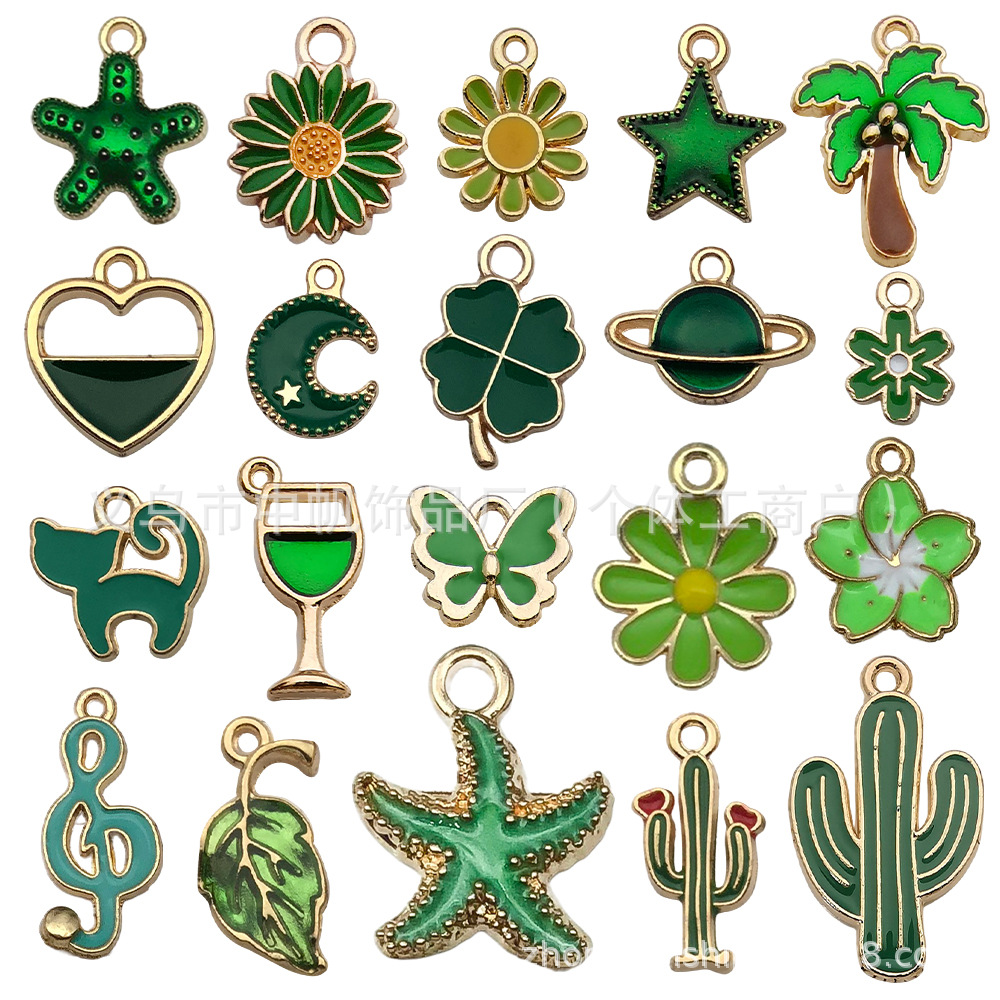 20种类のドリップオイルグリーンセット合金ペンダントサボテンハートピアスブレスレットdiy手作りアクセサリーアクセサリーアクセサリー