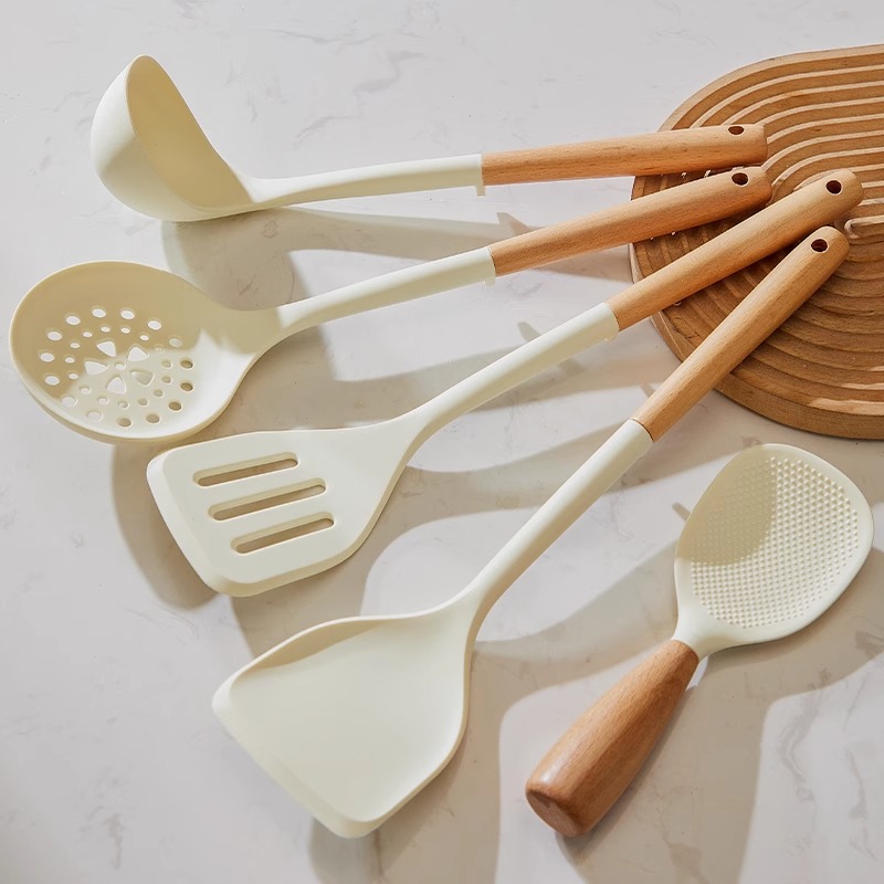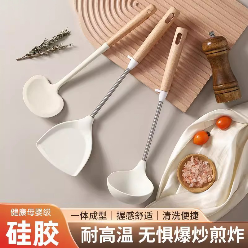 クロスボーダーシリコンキノコスパチュラ、中華スパチュラ、ノンスティックスパチュラ、木柄スプーン、鍋を傷つけない調理用スパチュラ