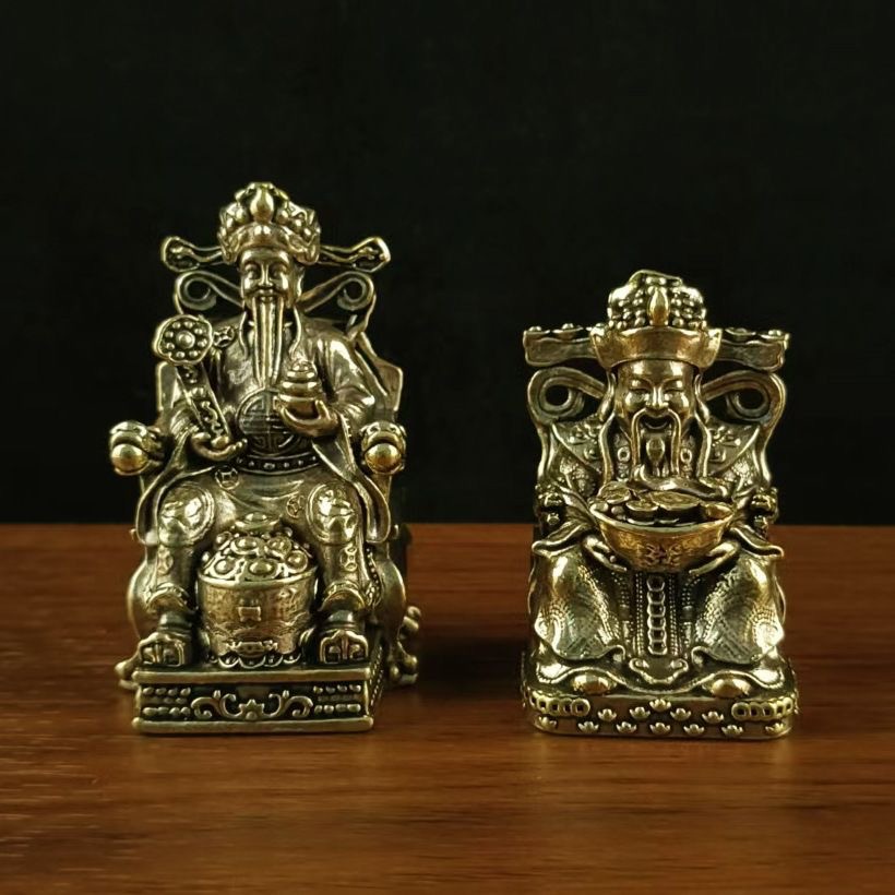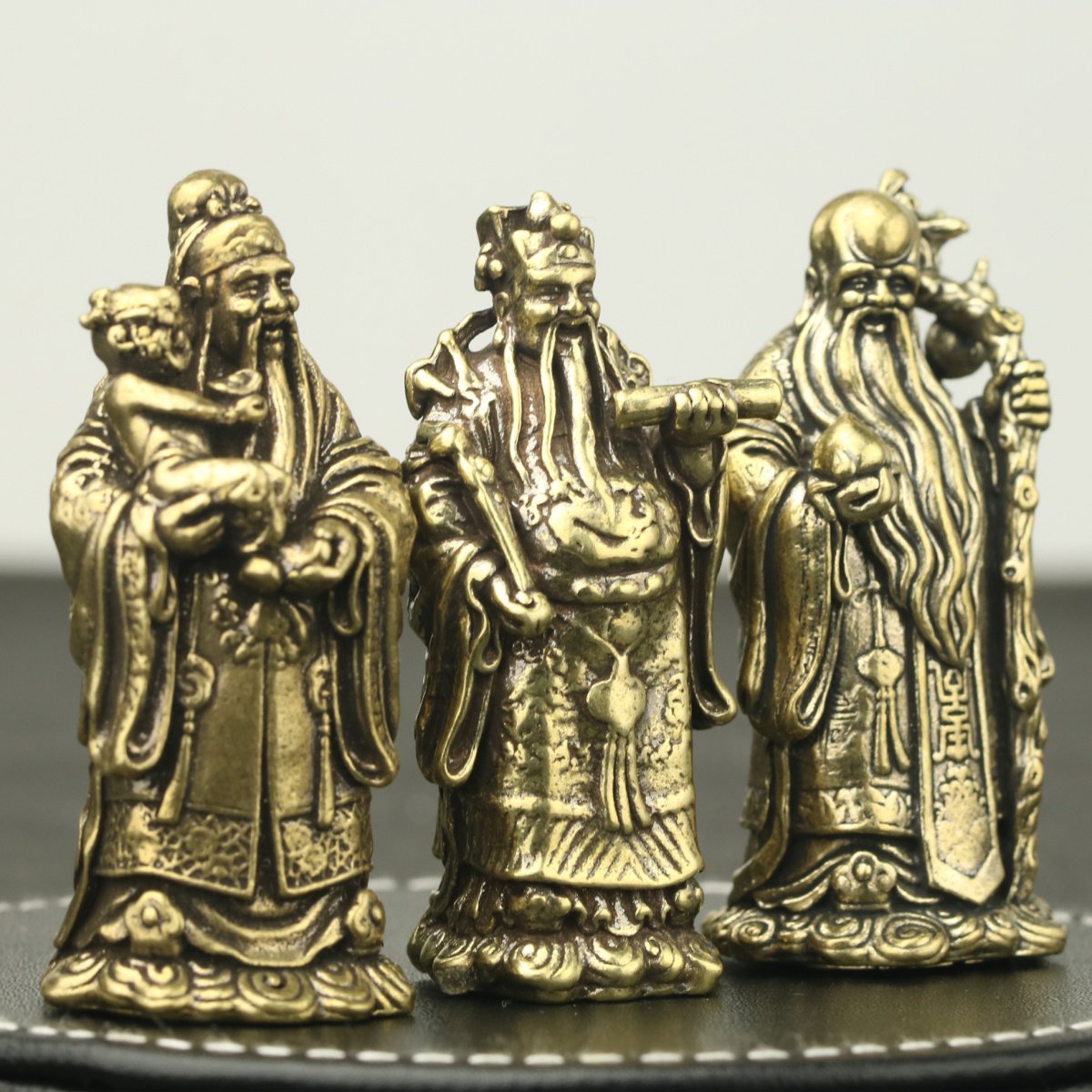 レトロな黄銅の神像のサムスンの置物のデスクトップの福禄寿福星の財神禄星の黄銅の古代の老人の福禄寿