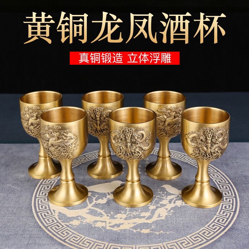 真鍮のゴブレット、古典的な大、中、小の礼拝用品、卓上装飾品、水入れ、龍と鳳凰のワイングラス卸売