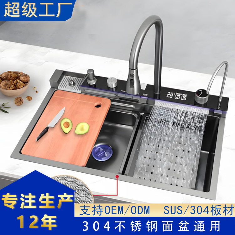304ステンレス鋼製クジラ型多機能シンク、ハニカム模様キッチンシンク、越境大型単槽大容量洗い桶