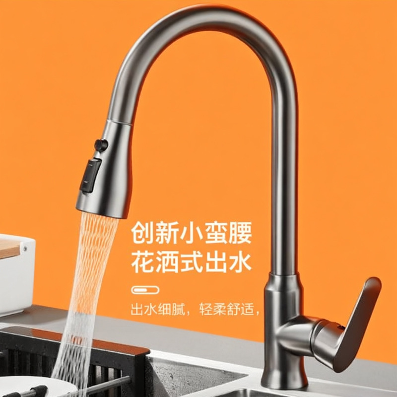 304ステンレス製キッチン蛇口、引き出し式洗い桶シンク、万方向回転式全銅製蛇口、食器洗いシンク