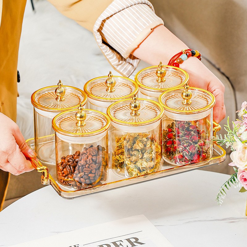 ガラス茶葉缶密封缶蓋付き家庭用収納食品級貯蔵タンク雑穀貯蔵小缶セット