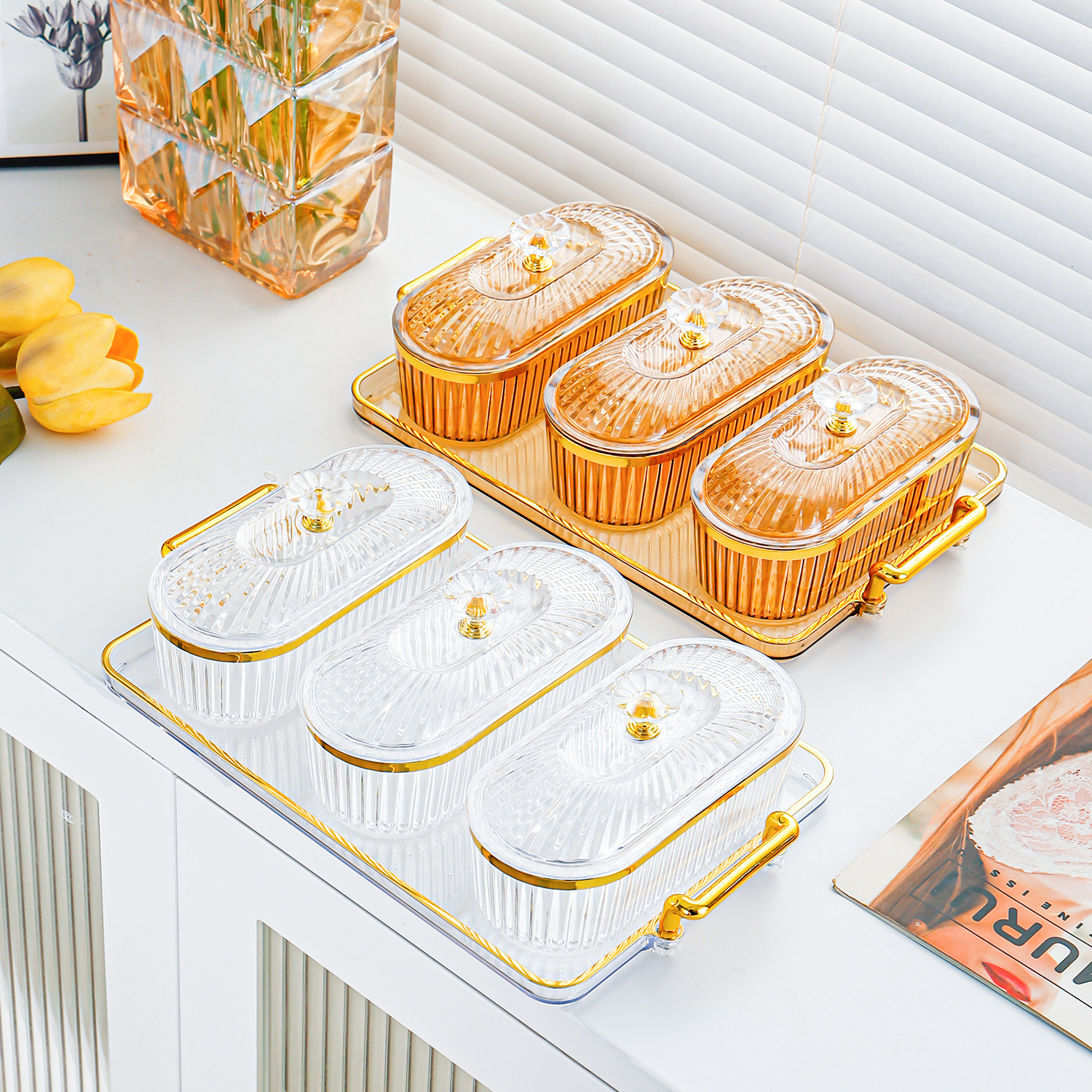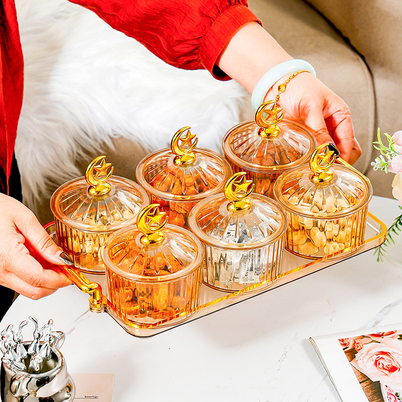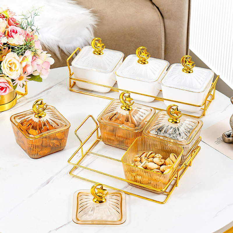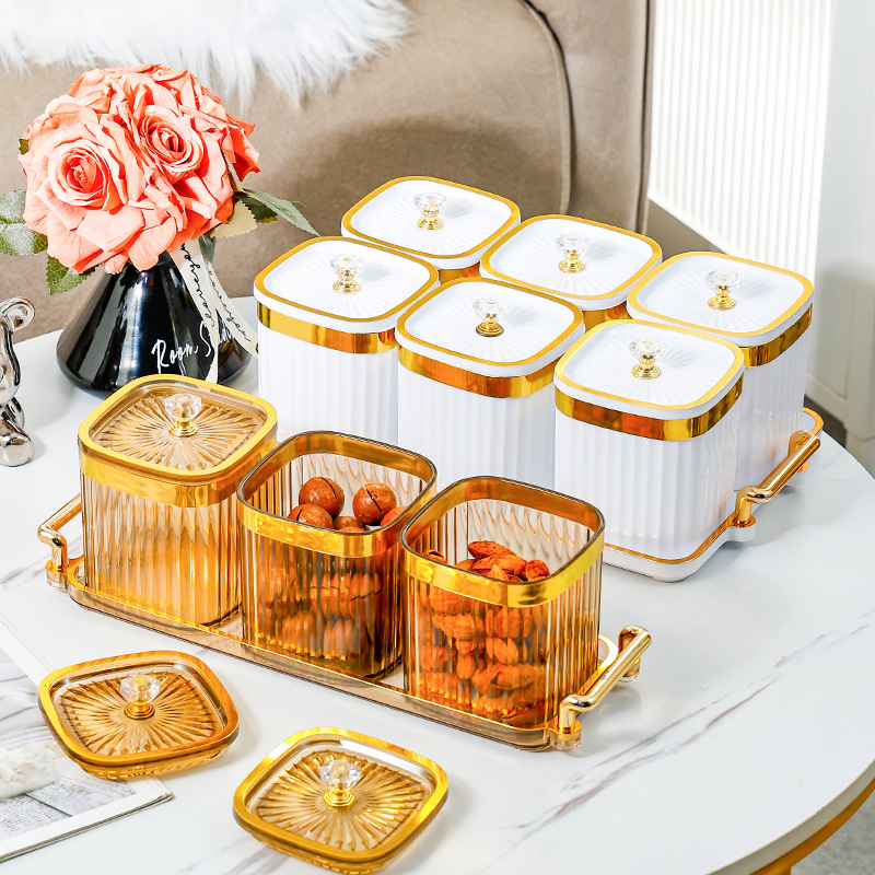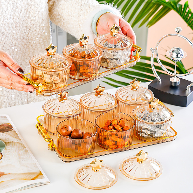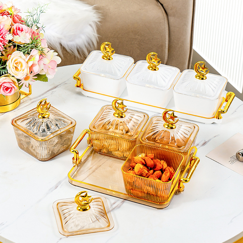軽くて豪華な密封の果物の皿の家庭用の客間の高級な新型の果物の皿のキャンディーの箱の間食は皿の乾果の収納箱を並べます。