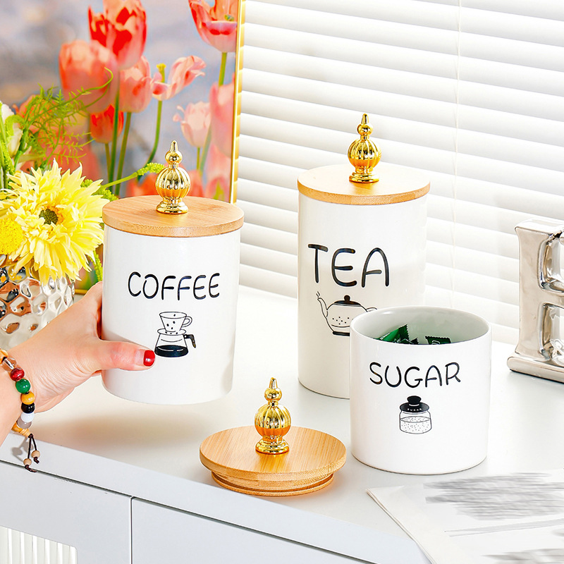 セラミックシール収納缶蓋付き防湿砂糖貯蔵タンクネット赤茶葉缶高級感家庭用貯蔵豆缶
