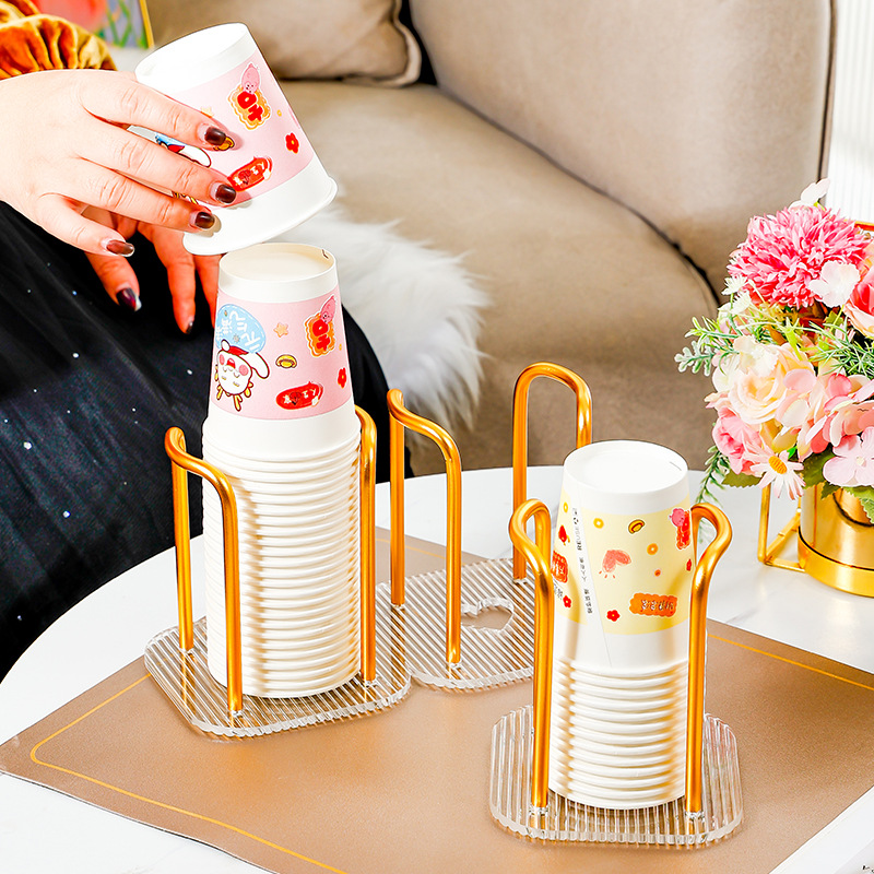 軽豪華家庭用使い捨てカップ取っ手デスクトップカップ棚穴なし紙コップ棚クリエイティブ紙コップ収納棚