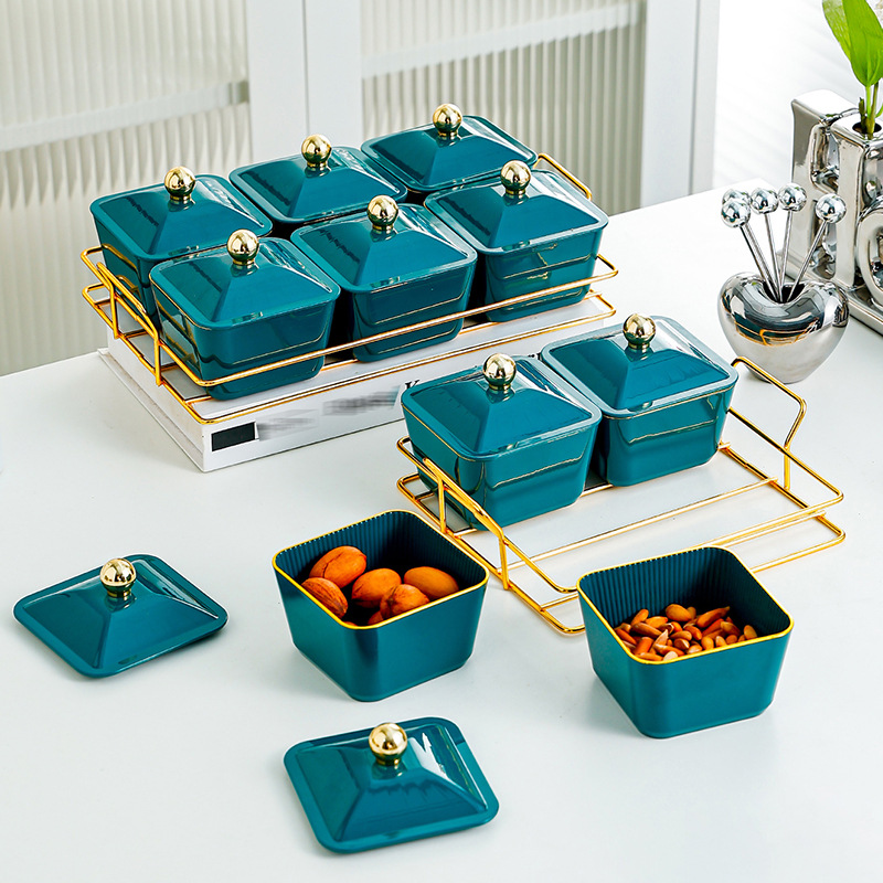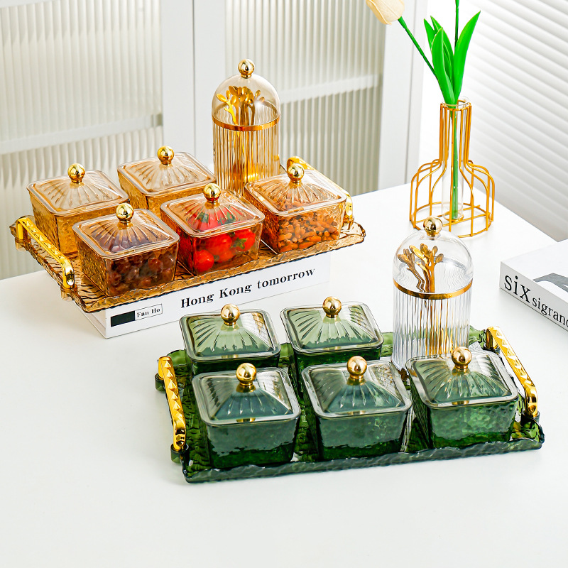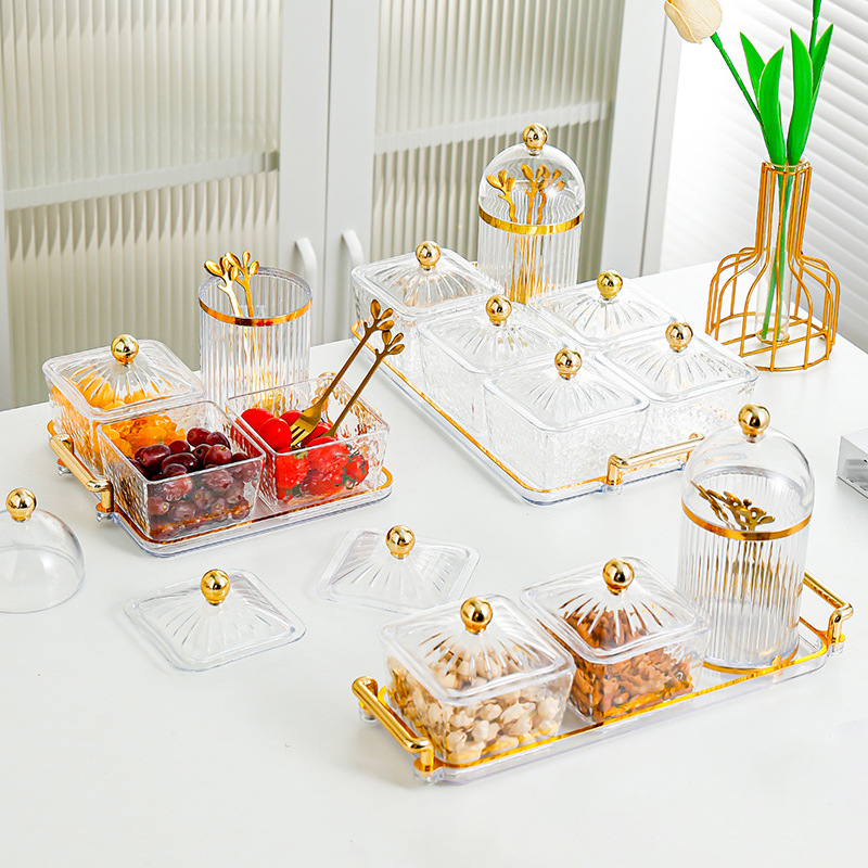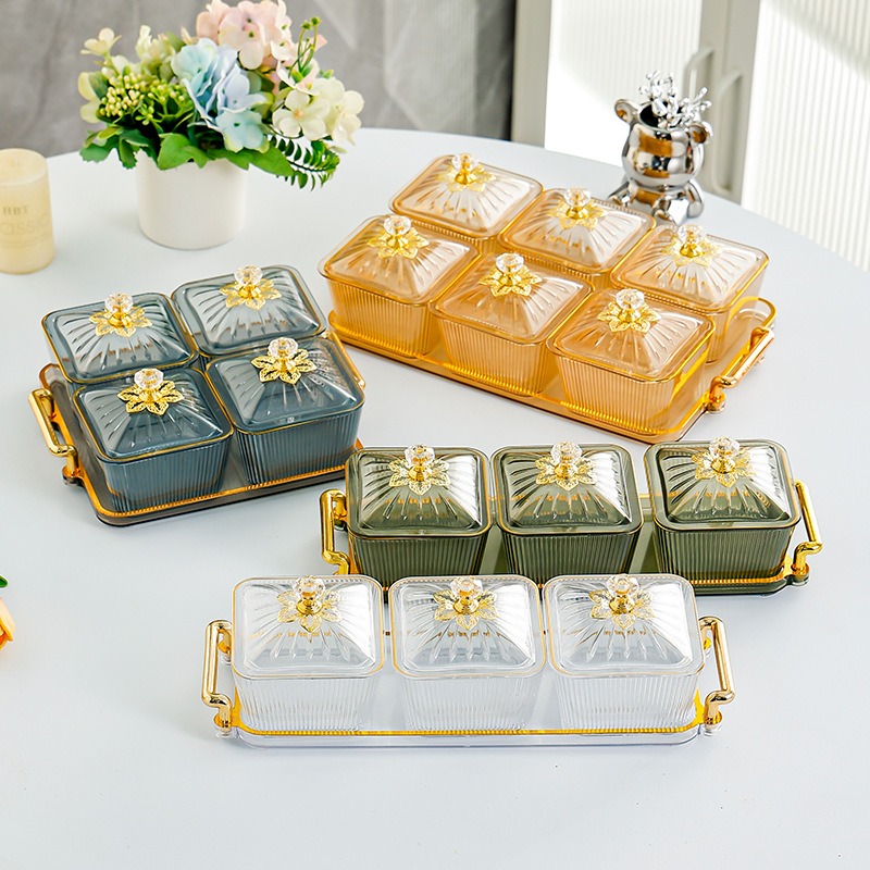 果物皿分格蓋付き家庭用リビングルームのお茶のお菓子キャンディーのお菓子のドライフルーツは収納ケースを並べて贅沢で高級です。