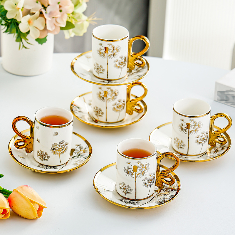 ヨーロッパ式の高級な精巧な小さい容量のコーヒーの杯の皿は軽くて豪華なイギリス式の紅茶の杯の皿のギフトボックスの高級なセットのコップです。
