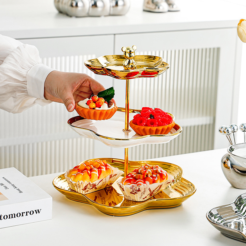 軽い豪華な多層陶磁器の果物皿のリビングルームのお茶の家庭用皿の前のデザート台はお菓子のキャンディー皿を並べます。