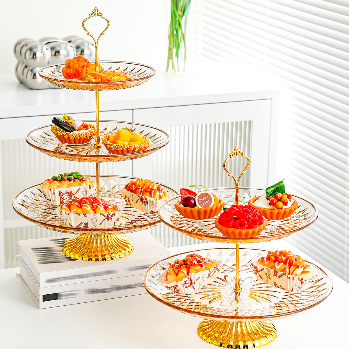 軽い贅沢な果物皿家庭用リビングルームのお茶はキャンディー皿を並べて、スナック皿の多層高級果物皿のフロントに置く