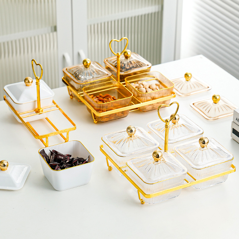 キャンディーケース軽贅沢高級家庭用リビングルーム茶何ナッツ瓜子分格収納ケースドライフルーツ皿2023新製品