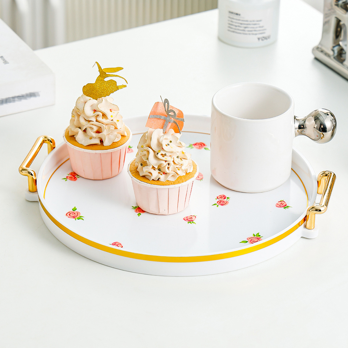 軽豪華高級円形トレー家庭用リビングルーム二重果物皿スナック皿水杯カッププラスチック収納棚