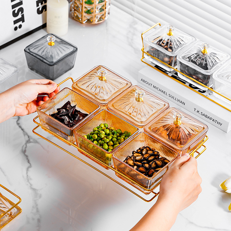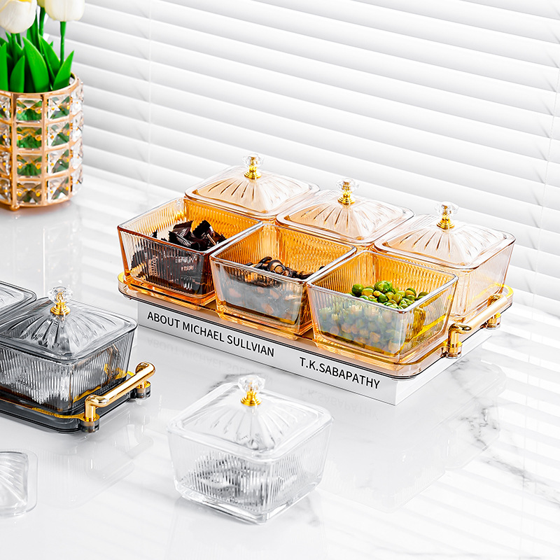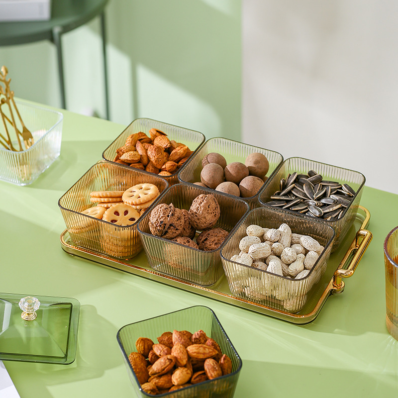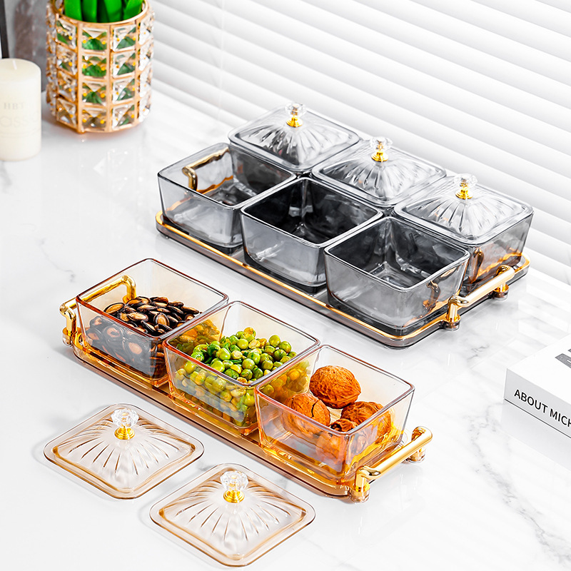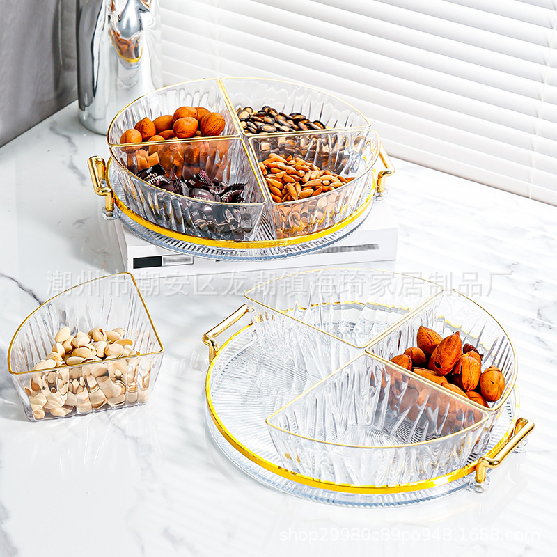 スナック家庭用フルーツプレートお菓子透明分格プレートキャンディパットリビングルームのスナック皿高颜値収納