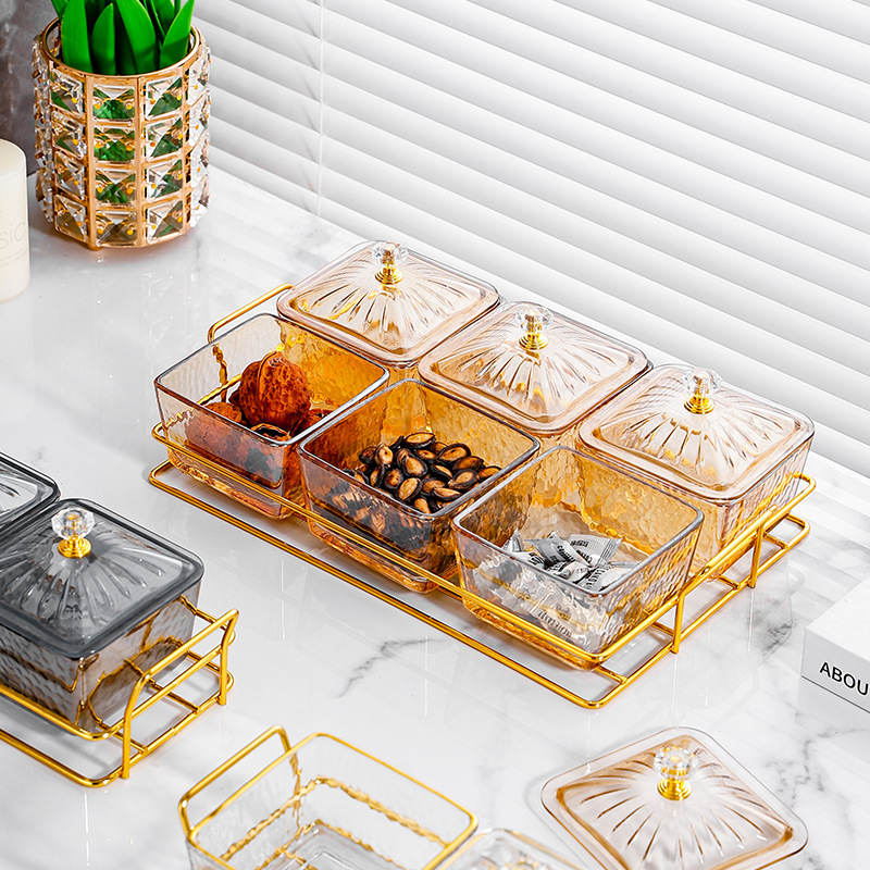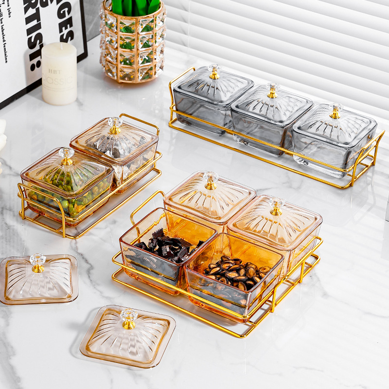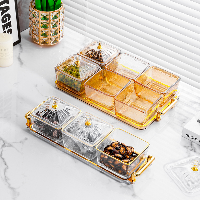 ガラス分格家庭用キャンデー小食皿北欧フルーツ皿リビングおやつトレーキャンディーケース収納シンプル