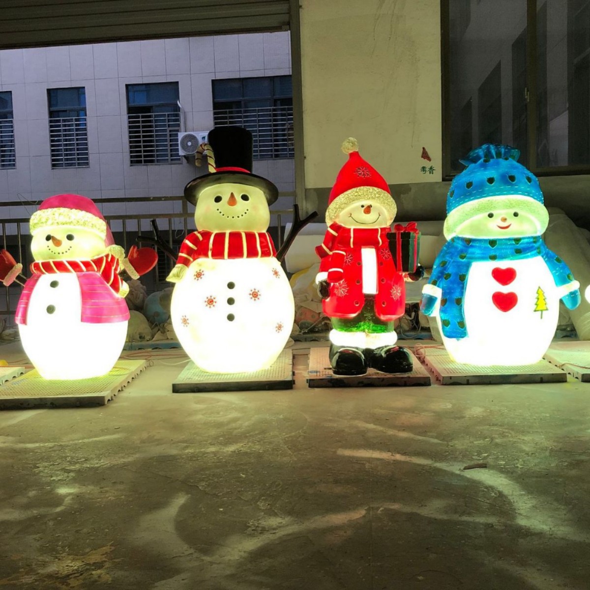 漫画発光雪だるま屋外ガラス鋼彫刻園林景観不動産団地クリスマス着地装飾置物