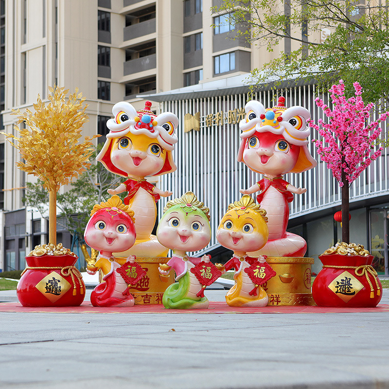 新年の蛇2025春節のマスコットの彫刻の漫画の生肖のデパートの美陳の祝い事の店の元旦の装飾の置物