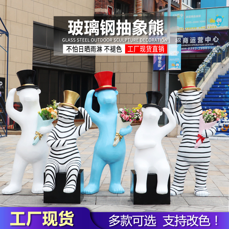 創意芸術斑紋抽象熊着地彫刻ガラス鋼装飾置物見本室客間軟装工芸品