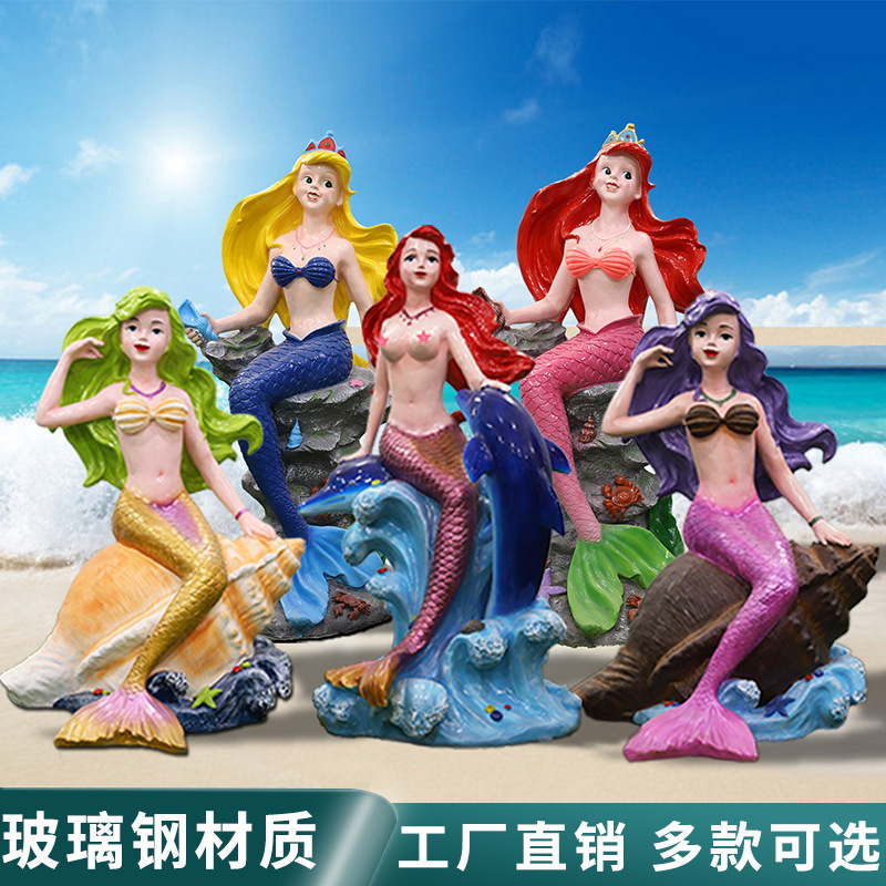 屋外のガラス鋼の漫画の人魚の海洋の水泳館のビルの彫刻の景観の池の着地する装飾の大きい置物