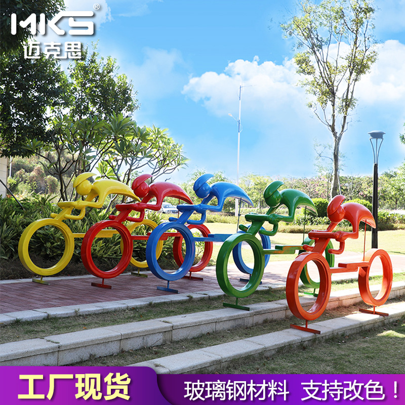 ガラス鋼庭園景観彫刻スポーツ広場自転車自転車抽象自転車人物大型置物