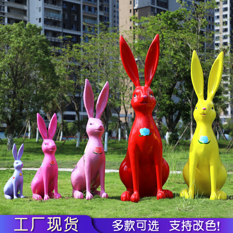 ガラス鋼の色絵のウサギの彫刻の屋外の庭園の景観の装飾品の幼稚園のデパートのかわいい漫画の置物の大きいです。