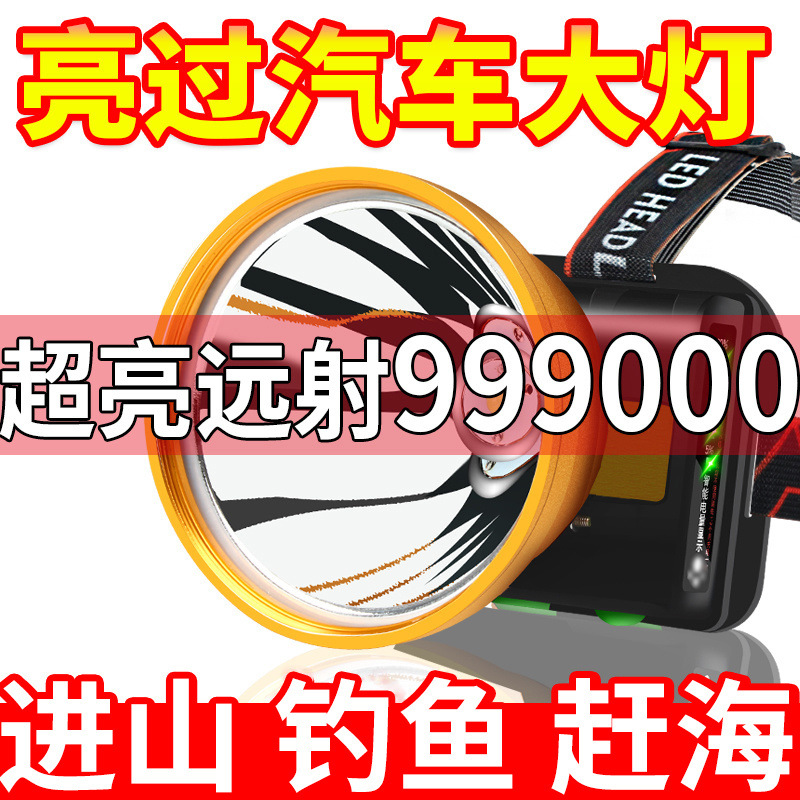 純輸入ヘッドライト、強力な光LED屋外照明、長距離超高輝度ヘッドマウント懐中電灯、フィールドパトロール、夜釣り